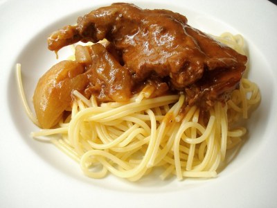 I was thinking about an English name for this dish the other day while watching Masterchef when Gregg spoke the words “She’s making a Beef Stifado. Will it be enough to get her through to the next round?”. Well, if the word is good enough for Gregg, then it’s good enough for me. Because Gregg isn’t pretentious at all. Fact. So there you go: we’re almost at the end of the Greek month (the word month used in the most general way possible) and we are having Rabbit Stifado.