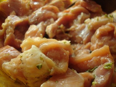 Having said that, I managed to persuade Alex to do the dirty job of cutting it in pieces. It didn’t look like a great job. It was a bit messy but the idea is to try and cut it in half following the spine and then remove the 4 legs and any other meat pieces from around the main bone. We threw that away. If you want some proper advice on preparing the rabbit, there are quite a few useful videos on YouTube that we only thought of looking up after we had finished.